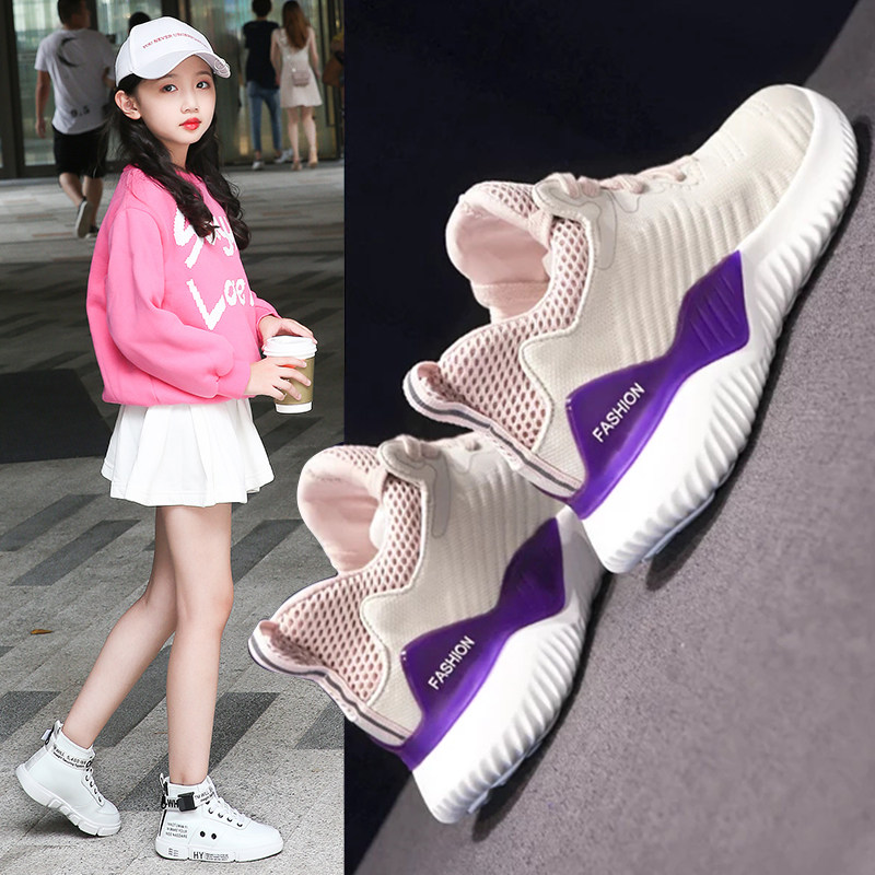 Little girl sneakers 2021 spring and summer new mesh breathable mesh shoes large children's children's running shoes girls ' shoes