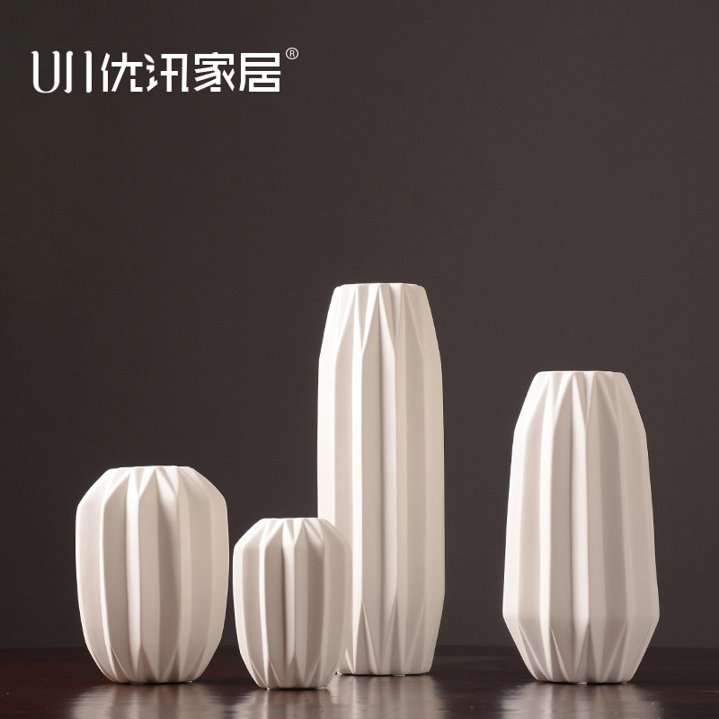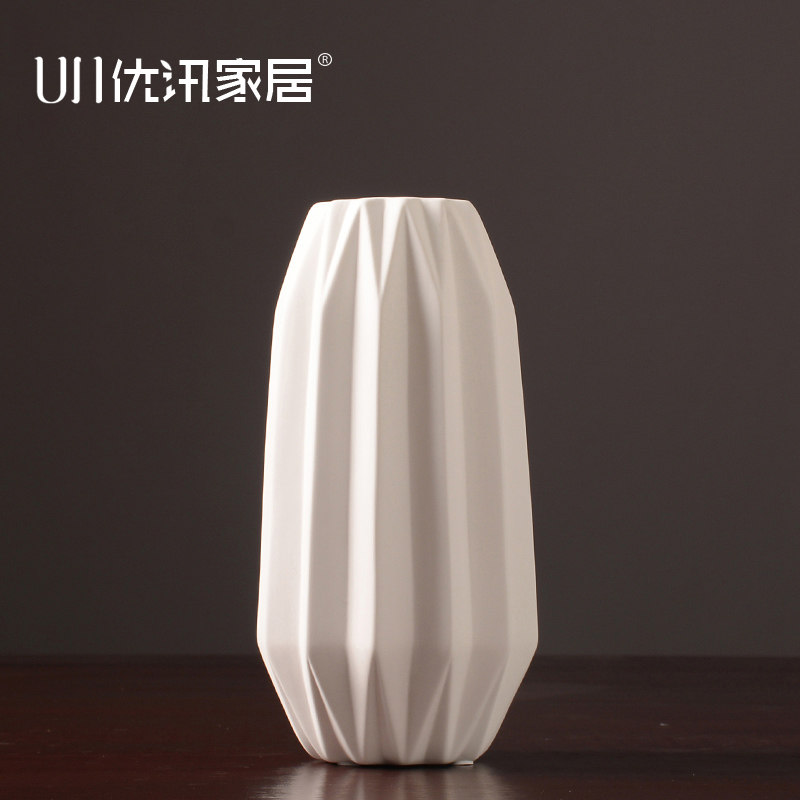 Plain white ceramic dried flower vase decoration Living room dining table flower arrangement Hydroponic flowers Fugui bamboo lily flower vase