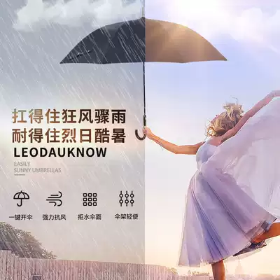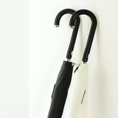 Simple plain straight bone ultra-light one-button open automatic sun umbrella Women's long curved handle solid color vinyl sunscreen parasol