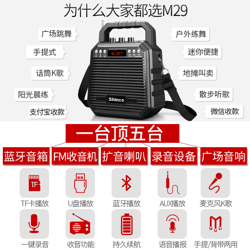 New Section M5 Outdoor Wireless Bluetooth speaker Square Dance Sound Card with Body Disc Overweight Low Tone Gun Mini Portable phone Home Small hand impact High power player radio