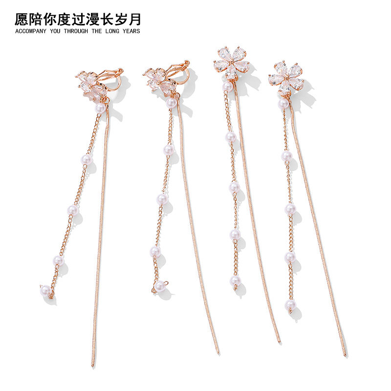 Earclip Without Earbuds Woman Lukewarm Wind Superior Fluttering Sufa-style Earrings Long Version Temperament Small Crowdcast Elegant Mesh Red Earbuds