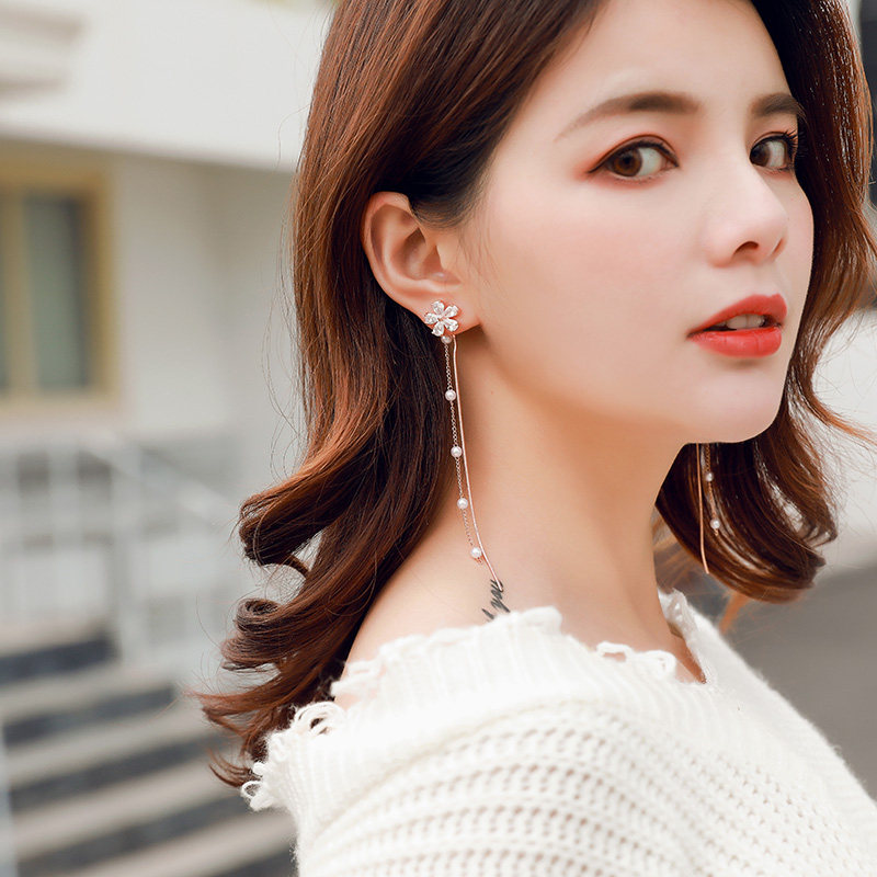 Rose Gold (Silver Needle) Five Petals 5 Pearl Earrings Rose Gold (Ear Clip) 5 Petals 5 Pearl Ear Clip