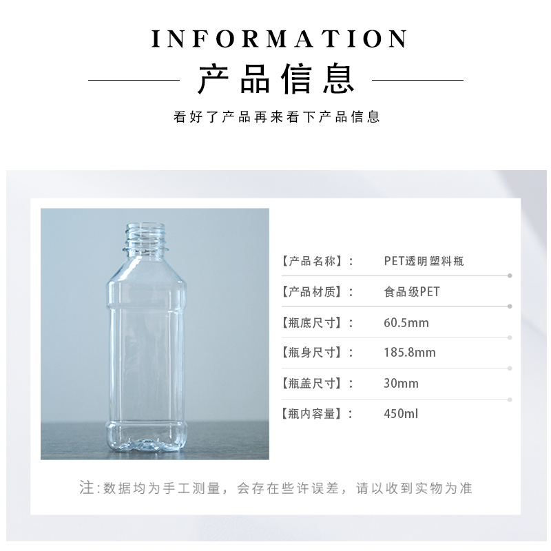Factory Direct Disposable Plastic Bottle 450ml Thickened Juice Drink Transparent Plastic Bottle PET PACKAGING EMPTY BOTTLE