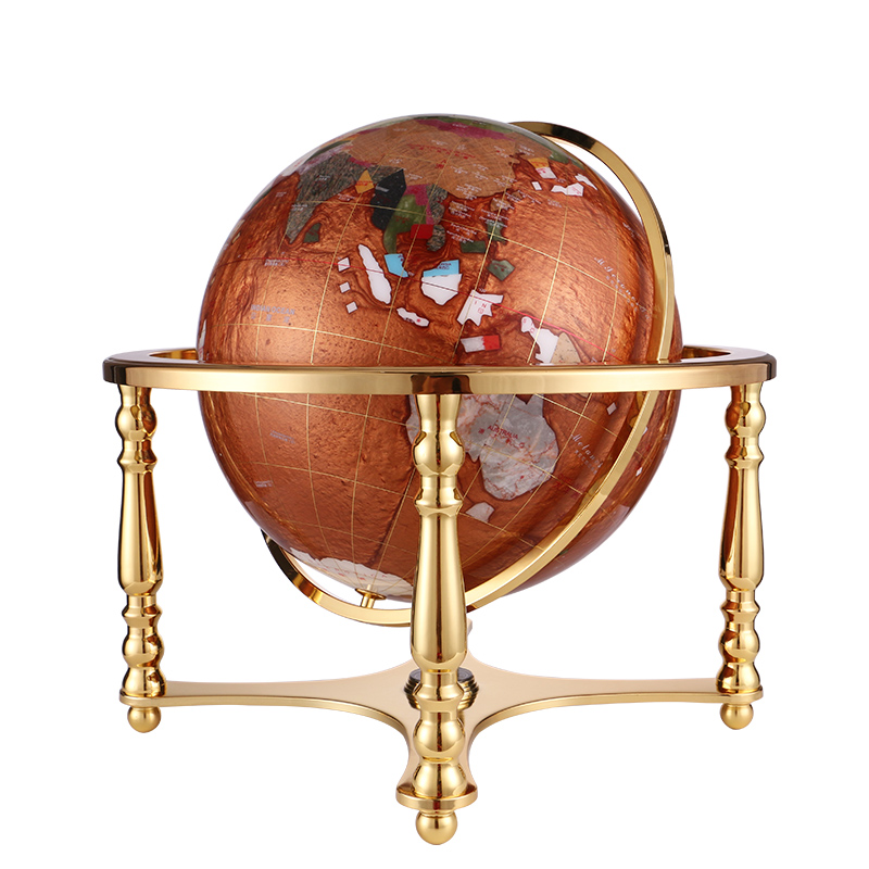 Golden ball universal rotation 33cm large gem desktop desktop globe HD metal base Office home craft gift decoration decorative gift Study decoration with compass teaching
