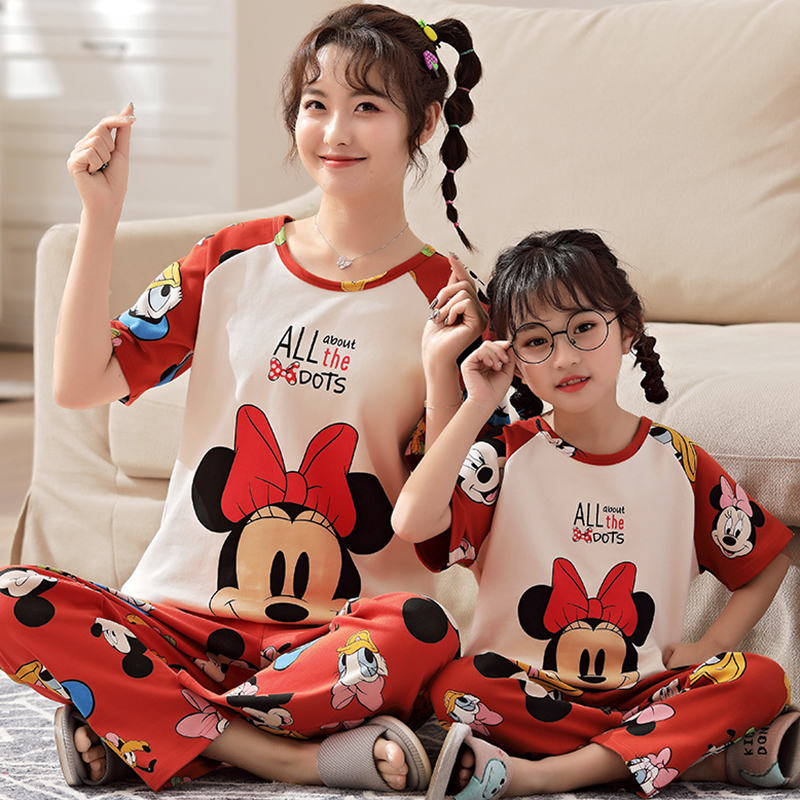 Short-sleeved trousers-rabbit head girls short-sleeved trousers-rabbit head mother short length-QD2289 Minnie mother short length-QD2289 Minnie girl short length-YT yellow Pikachu mother