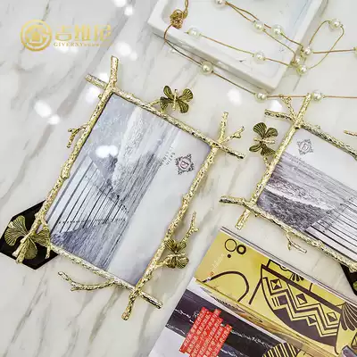 Modern minimalist Golden Branch craft metal photo frame model room side square photo frame decoration decoration