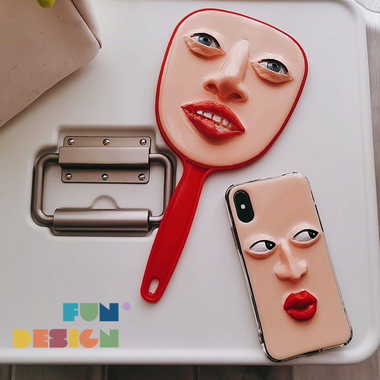 Thai designer funny three-dimensional face expression spoof hand-held makeup mirror handle mirror gift