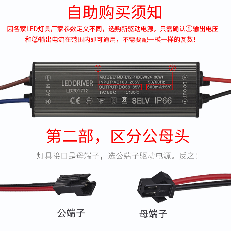 1-3w300mA Aluminum shell male terminal 4-8w300mA Aluminum shell male terminal 8-12w300mA Aluminum shell male terminal 12-18w300mA Aluminum shell male terminal 1