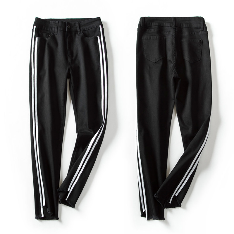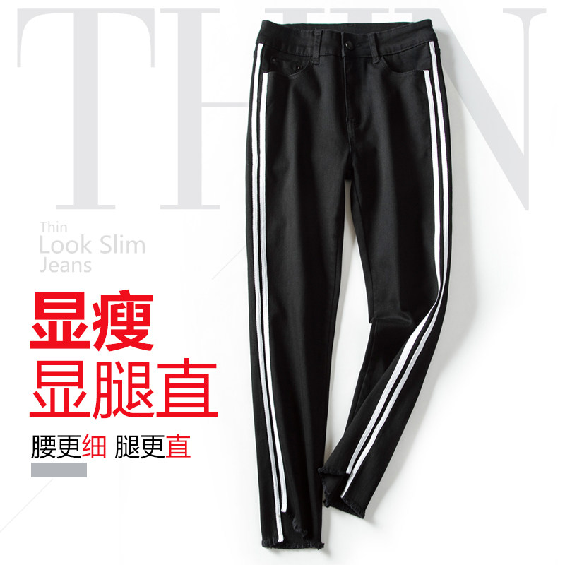 (clear warehouse special price) High waist denim small straight cylinder pants female elastic display slim Han version irregular hair side 90% pants-Taobao