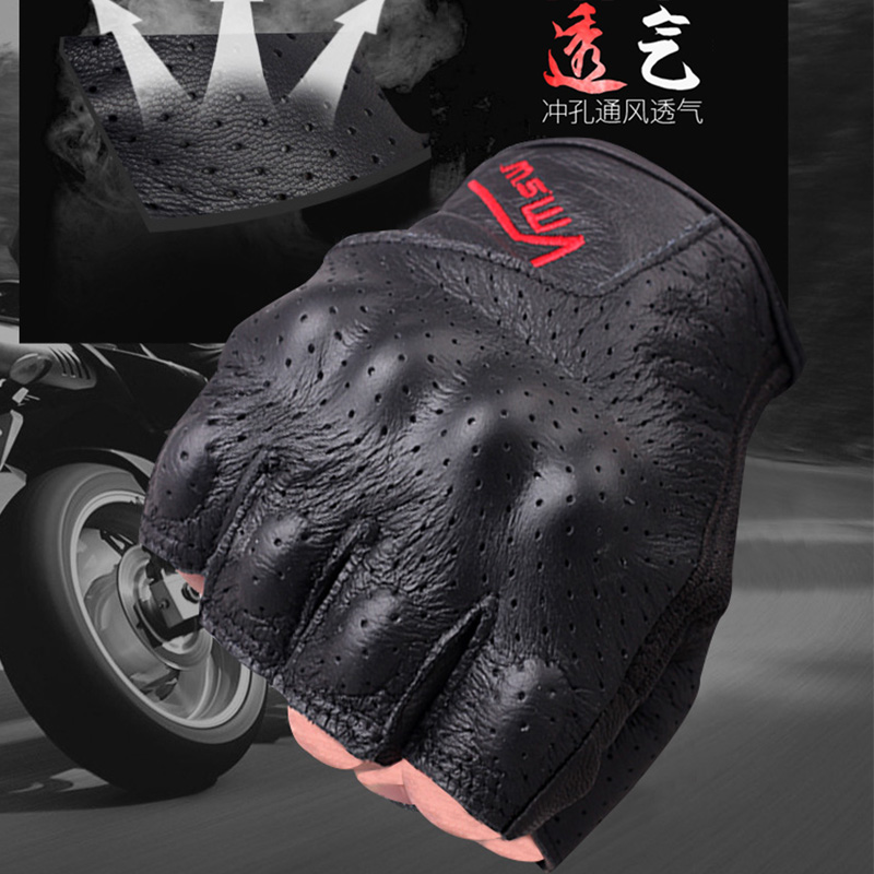 Summer locomotive cycling gloves leather gloves locomotive cyclists anti-fall breathable semifinger male electric car gloves