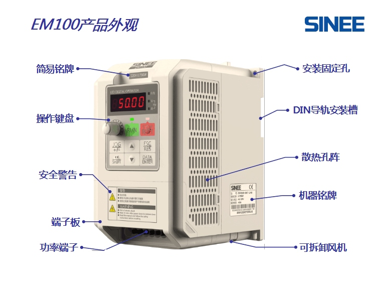 SINEE sinusoidal frequency inverter EM100-0R7-3B three-phase 0 380V 75KW simple vector type frequency converter