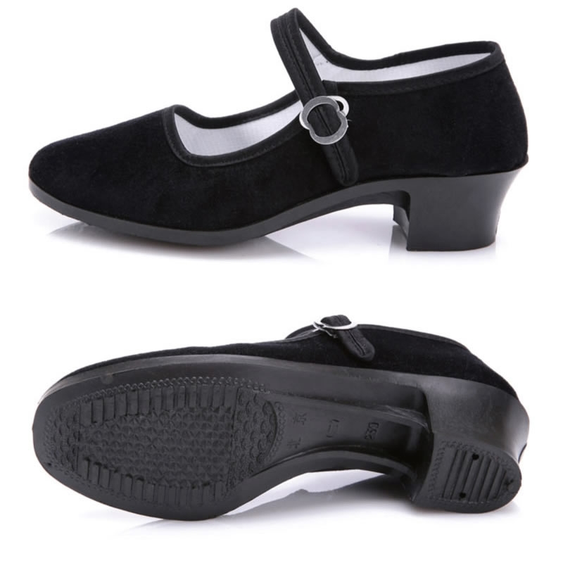 Ethnic Dance Shoes Examination Class Women Cloth Shoes Black High Heel Tibetan Dance Cloth Shoes Female National Folk Dance Northeast Shoots Song Shoes-Taobao