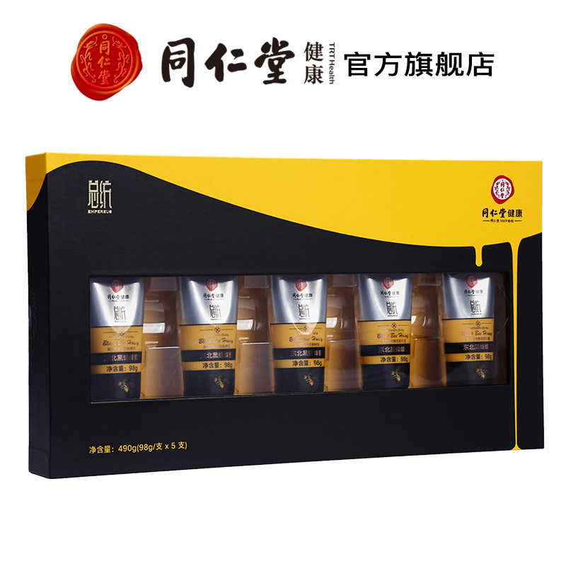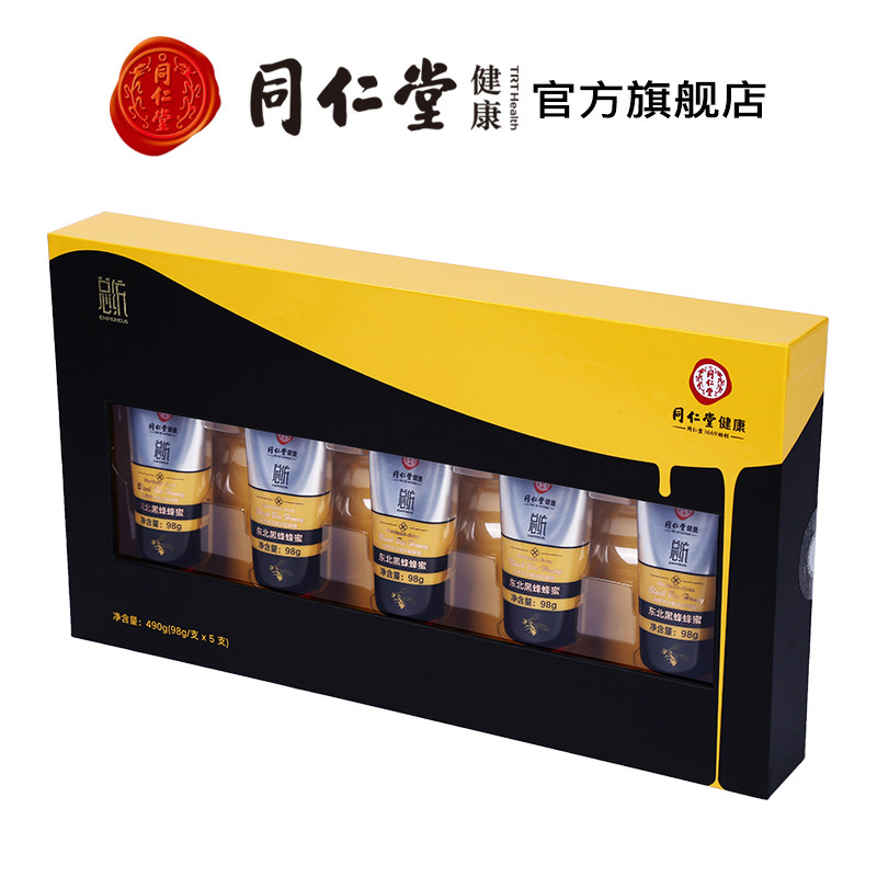 Honey gift box) Beijing Tongrentang Northeastern black bee honey gift box 98g * 5 pure natural official flagship store