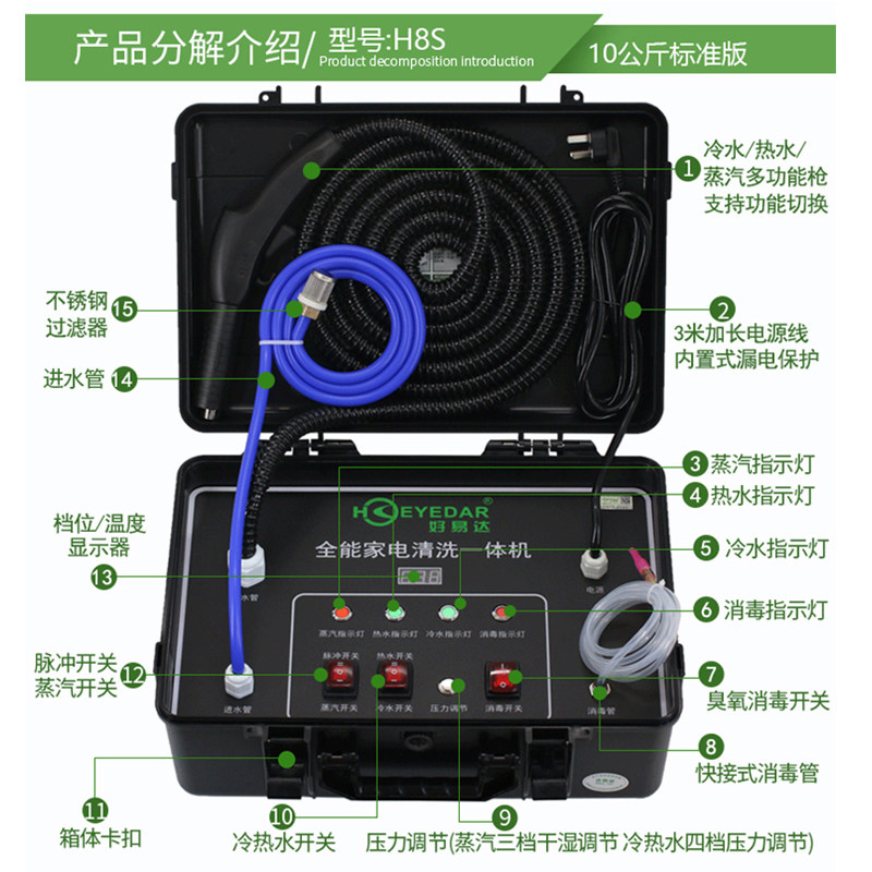 High temperature and high pressure steam cleaning machine car washing tool Commercial range hood air conditioning appliance cleaning multi-function machine