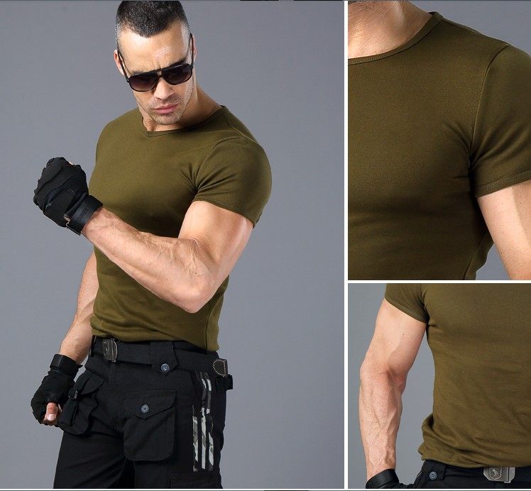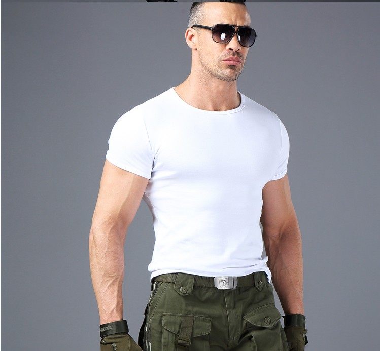Fitness sports short-sleeved men's summer new elastic cotton slim round neck T-shirt tooling physical training half-sleeved men
