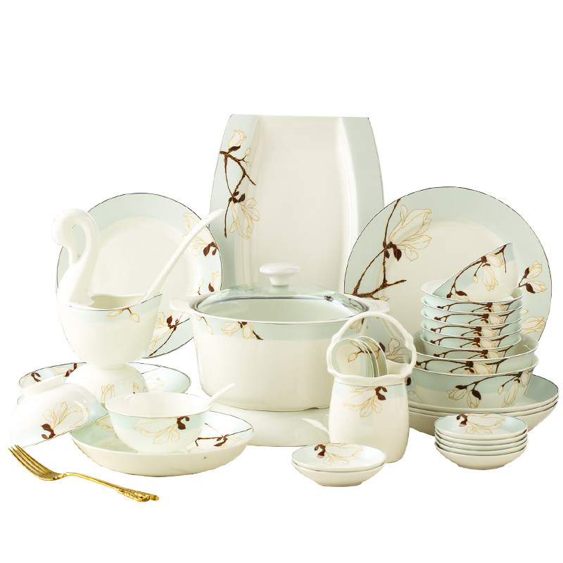 Jingdezhen bone china tableware set dishes housewarming gift ceramic bowls and plates home simple Chinese style light luxury