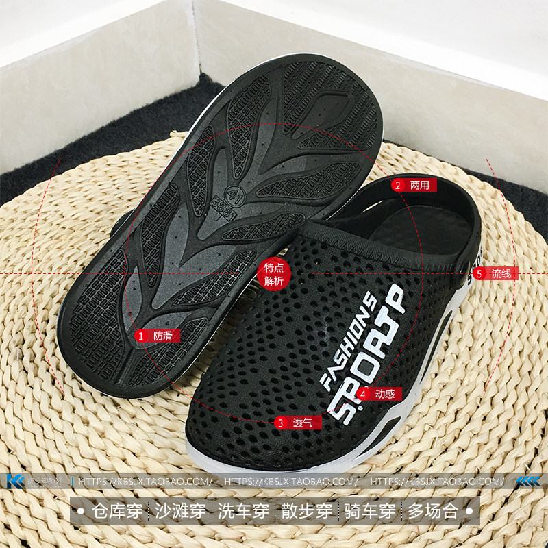 Dynamic hole shoes men's outer wear Baotou non-slip kitchen breathable sandals car wash work plastic beach shoes Xia Huanxin