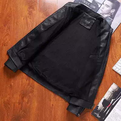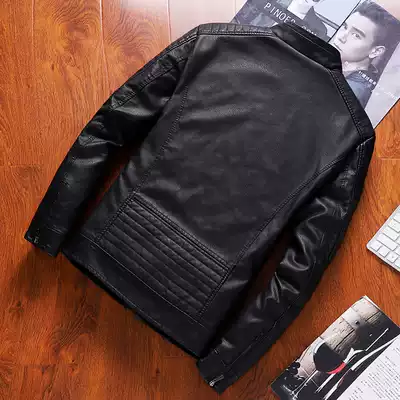 Leather clothing men Korean version of slim trend leather jacket autumn and winter plus velvet men's leather jacket stand collar locomotive clothing youth