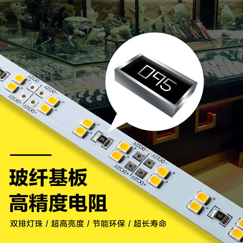 led hard light bar 12v double row super bright cabinet lamp 2835 long strip jewelry glasses shelf display cabinet light with slot