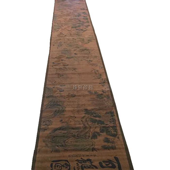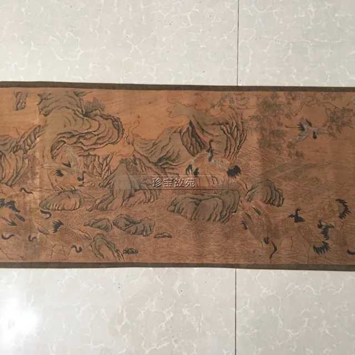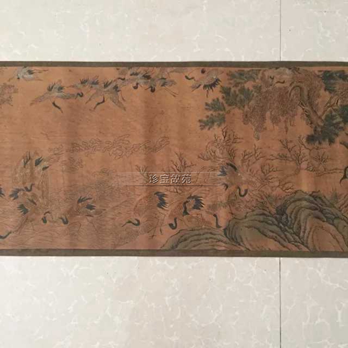 Antique painting long scroll Chinese painting new character silk silk living room decoration old hanging painting landscape hundred crane picture scroll painting large