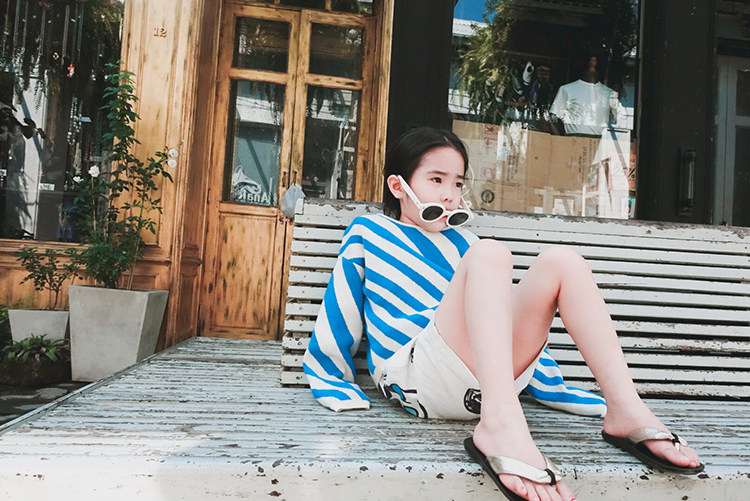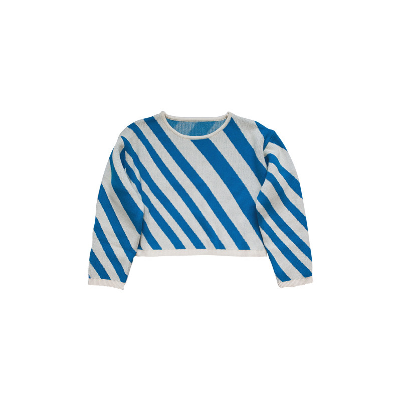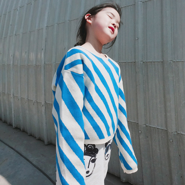 Dolls love the new spring and autumn men and women small CUHK children round neckline headlining italy striped full cotton knit cardiovert sweater