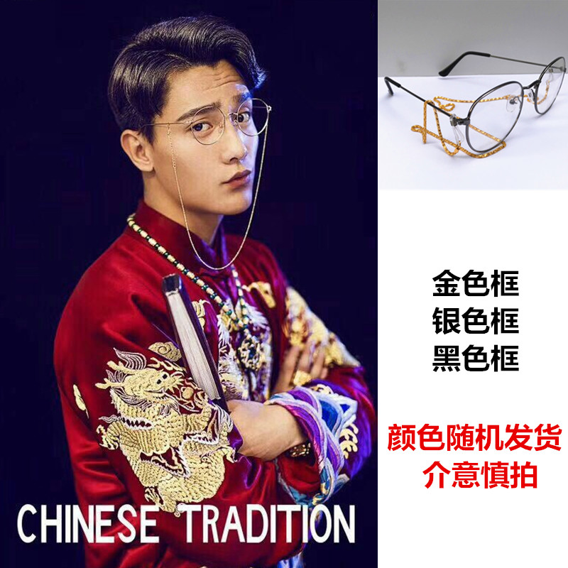 Net red personality photo glasses female pendant decoration photo studio photography national tide street shooting creative retro hanging chain glasses