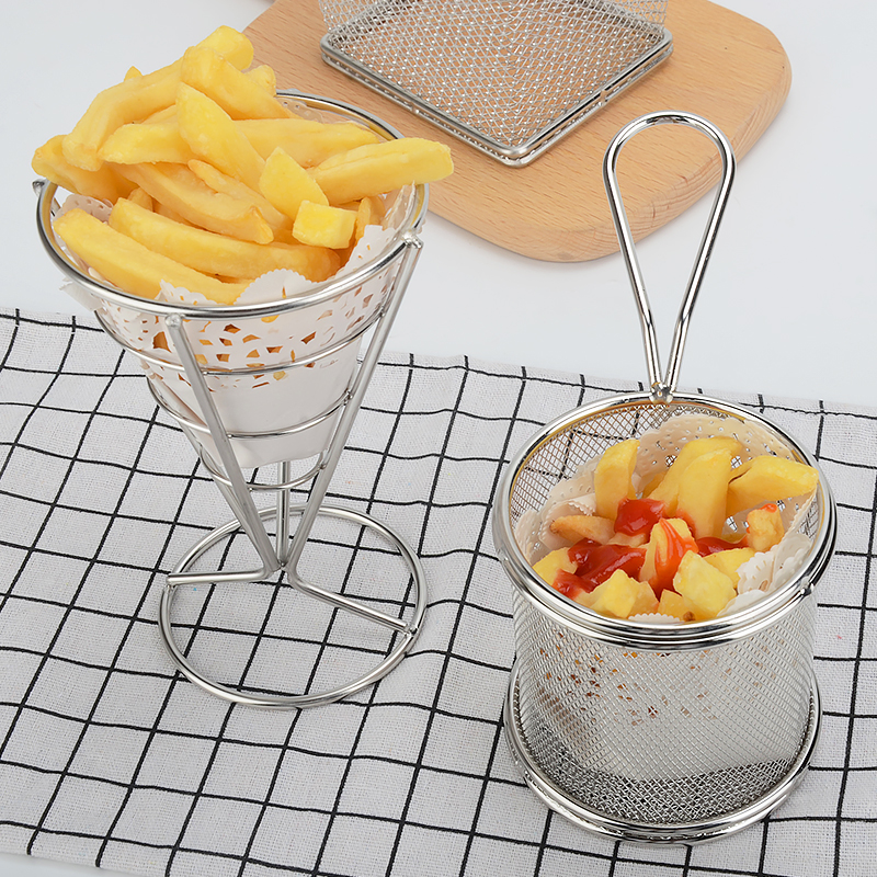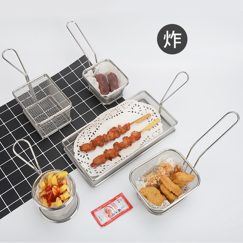 Stainless steel fries basket Fried Chicken Snack Basket Fried Basket filter Snack Basket Chicken Rice Basket Creative Cutlery