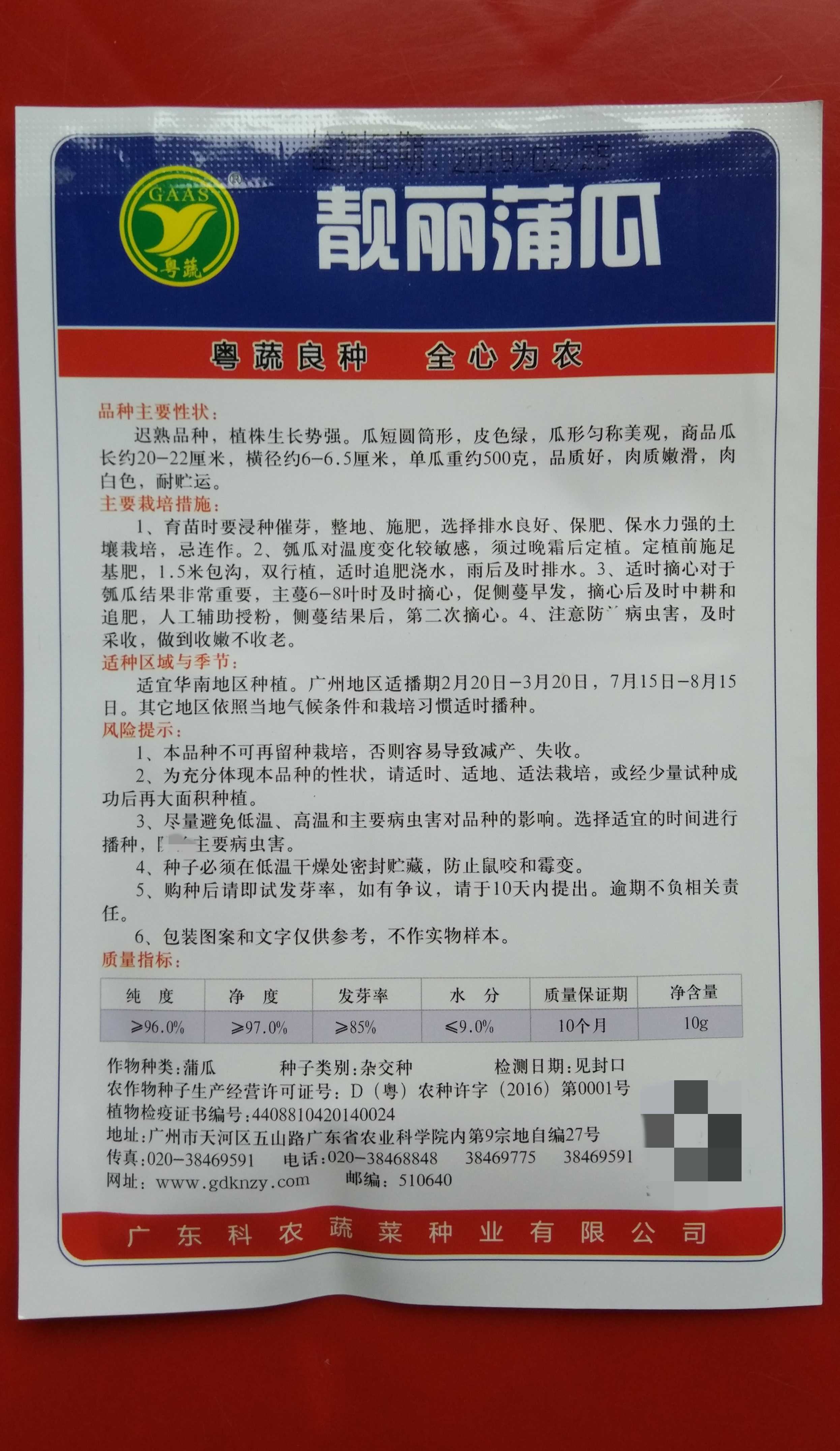 Beautiful Pugua Seeds (10g) Kenong Guangdong Vegetables Brand Gourd High-yield Guangdong Academy of Agricultural Sciences Vegetable Seeds