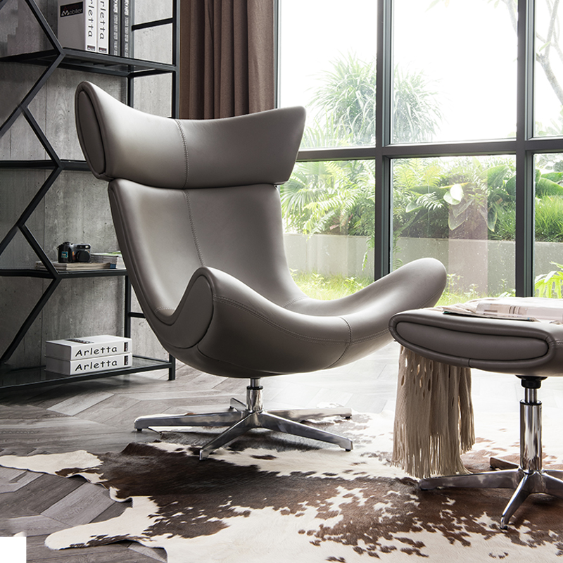 Nordic Single Leather Sofa Chair Designer Balcony Snail Chair Living Room Light Luxury Leisure Tiger Chair Bedroom Recliner Chair