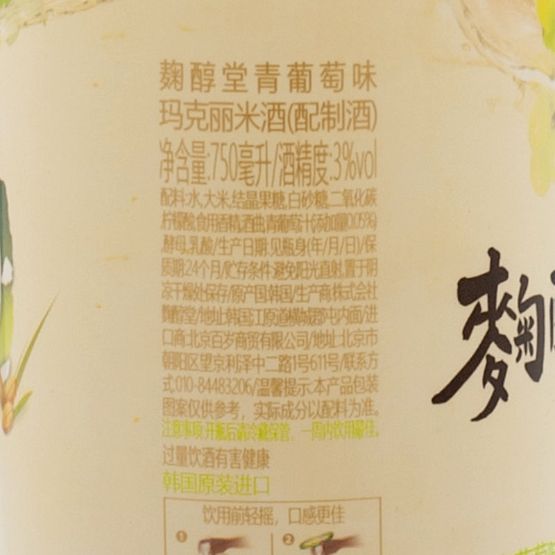Korean rice wine koji mellow Tang Margaret Green Grape Flavor 750ml*20 bottles Margaret confinement white rice wine