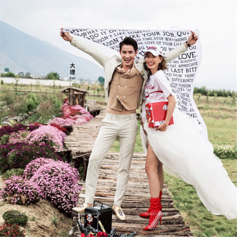 Photo gallery Photography background hanging cloth European and American fashion travel bag personality satchel creative brigade with outside view handbag props