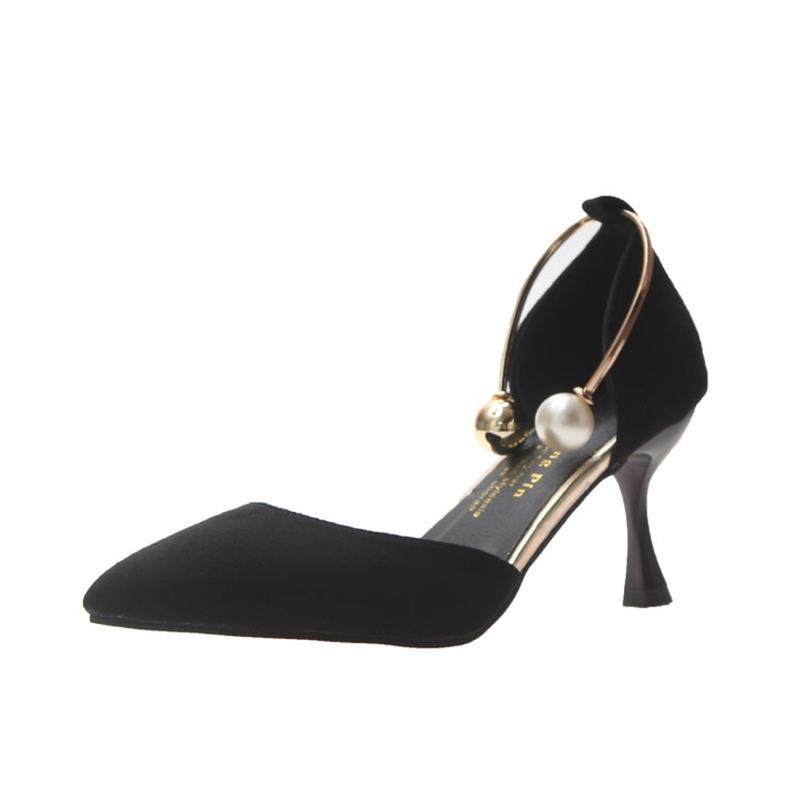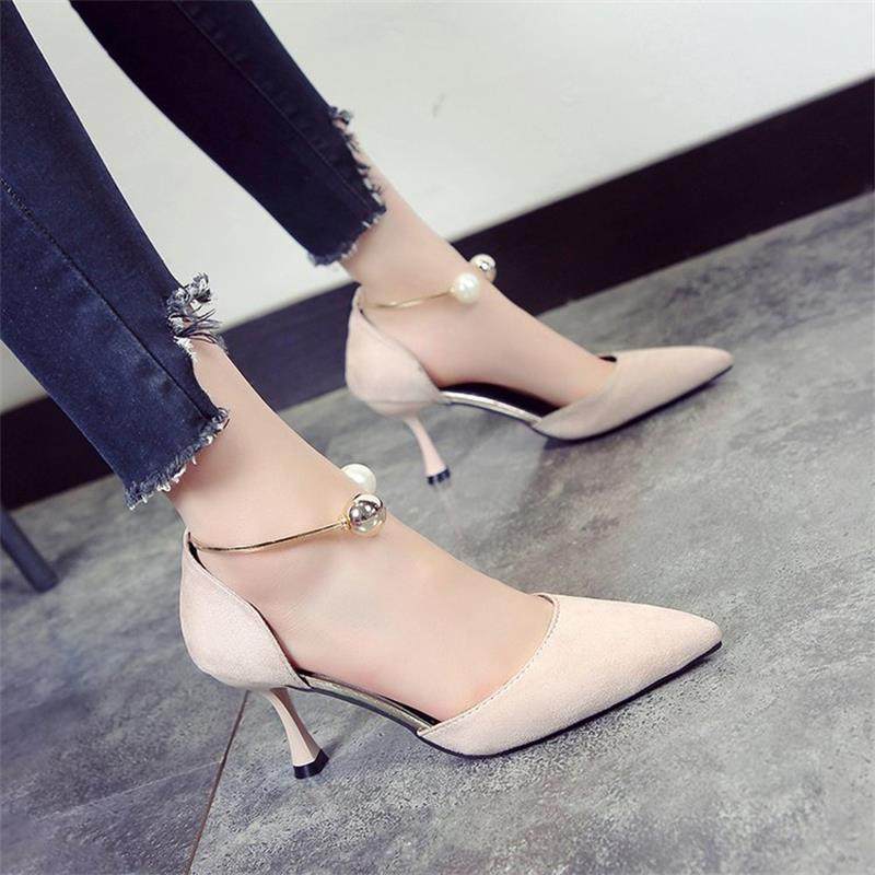 Shoes women's 2022 new spring hollow sandals women's shoes pointed pearl buckle small fresh thin heel high heels single shoes