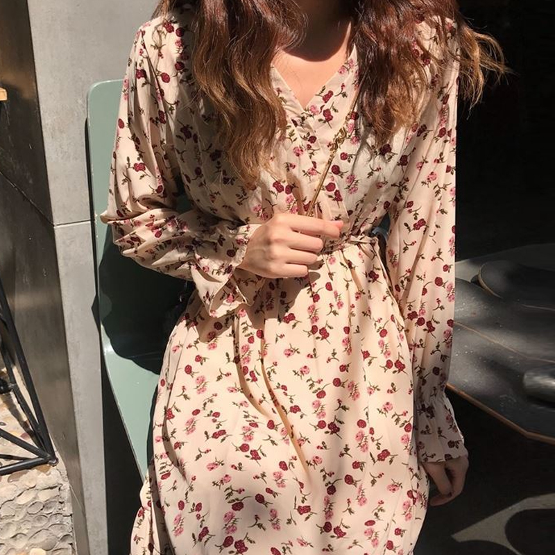 S(Floral Chiffon Spring and summer V-neck strap waist ruffle dress) M(Floral Chiffon Spring and summer V-neck strap Waist ruffle dress) L(Floral Chiffon Spring and summer V-neck strap Waist Ruffle dress)