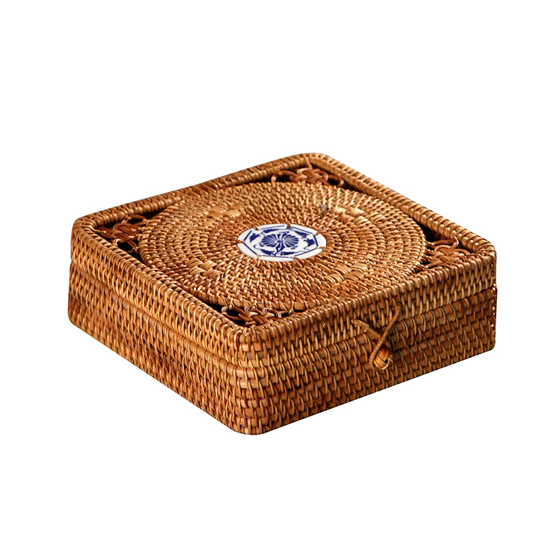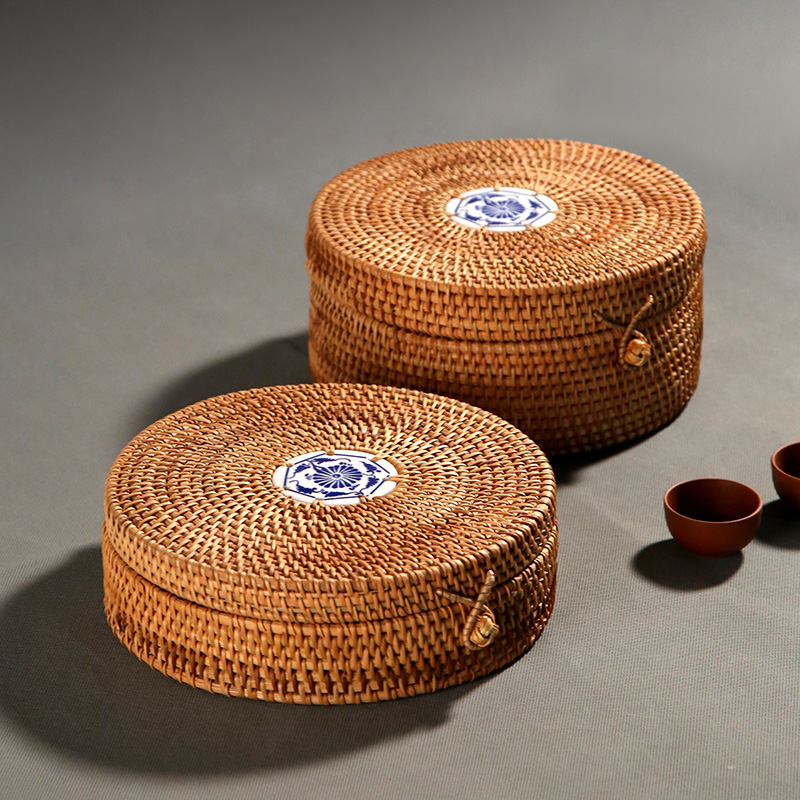 Vine-knitted seven-barrel rattan (small number) rattan (large number) rattan (large number) vine-woven tea cake box round high-style tea cake box round dwarfs rattan choreographye square-shaped arched section vine choreographye-style choreographer corner