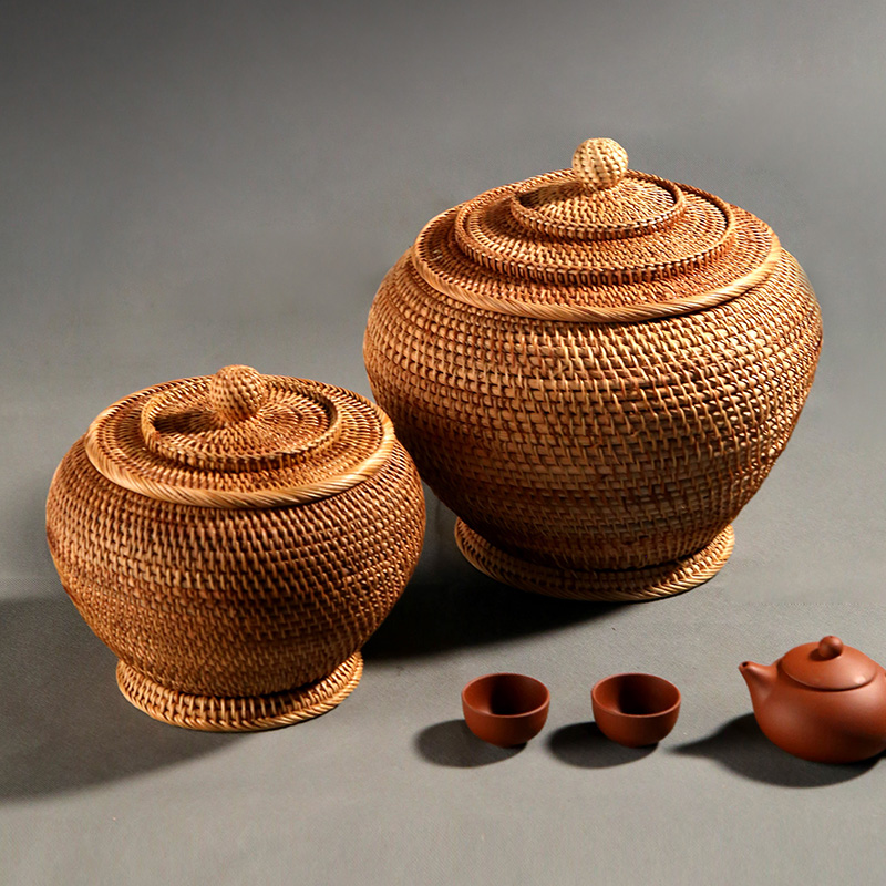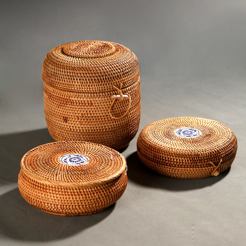 Vietnamese rattan with lid candy box Pu'er tea cake box bamboo chicket 7 Sub-barrel containing creative home storage basket
