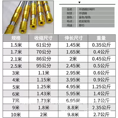 Stainless steel fishing net rod 1 5m3 6 8 10 meters ultra-long telescopic fishing net rod Extended harpoon rod fishing net rod