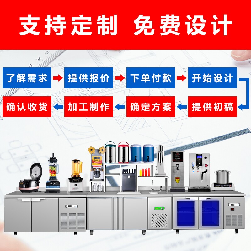 Milk Tea Shop Stainless Steel Operation Water Bar Commercial Refrigeration Worktable Milk Tea Shop Equipment Full Workbench Customized