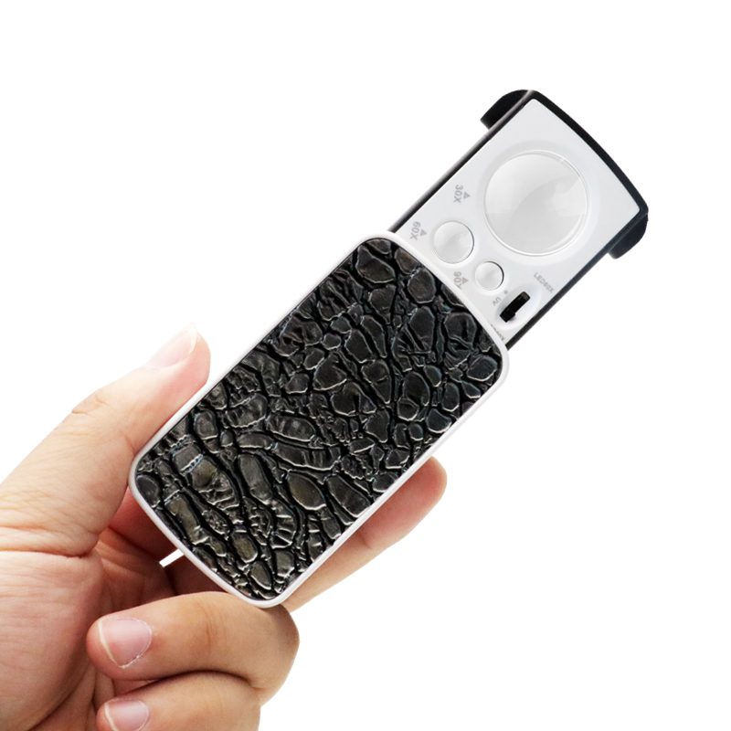 Jewelry Stamps Appraisal printed word painting Gaufold magnifier 30 times 60 times 90 times portable with lamp 774-3ZX