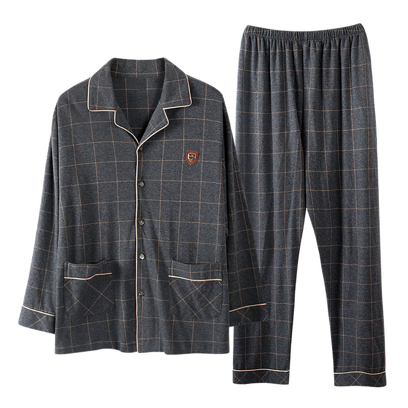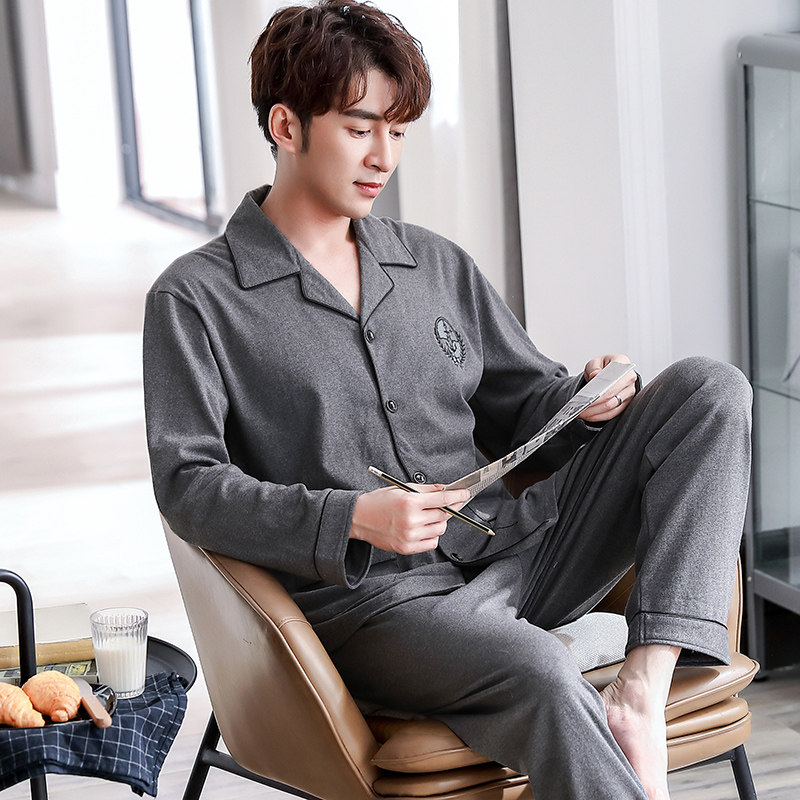 Men's pajamas spring and autumn pure cotton youth cotton 2021 new autumn and winter long-sleeved large size home wear suit