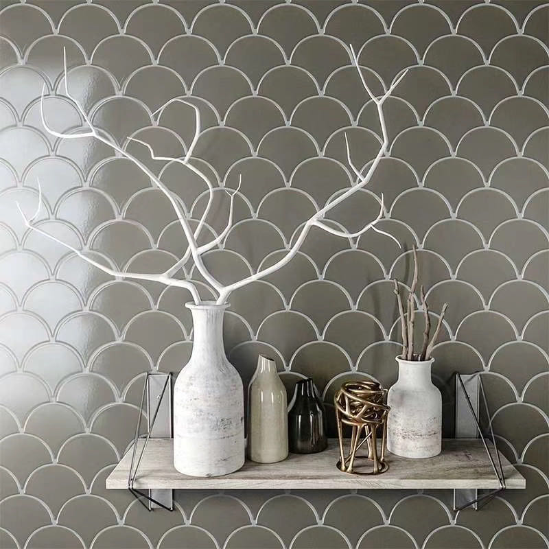 Red Kitchen Makeup Room Fish Scale Sector Mosaic White Umbrella-shaped Bathroom Wall Ground Background Wall Full Tile