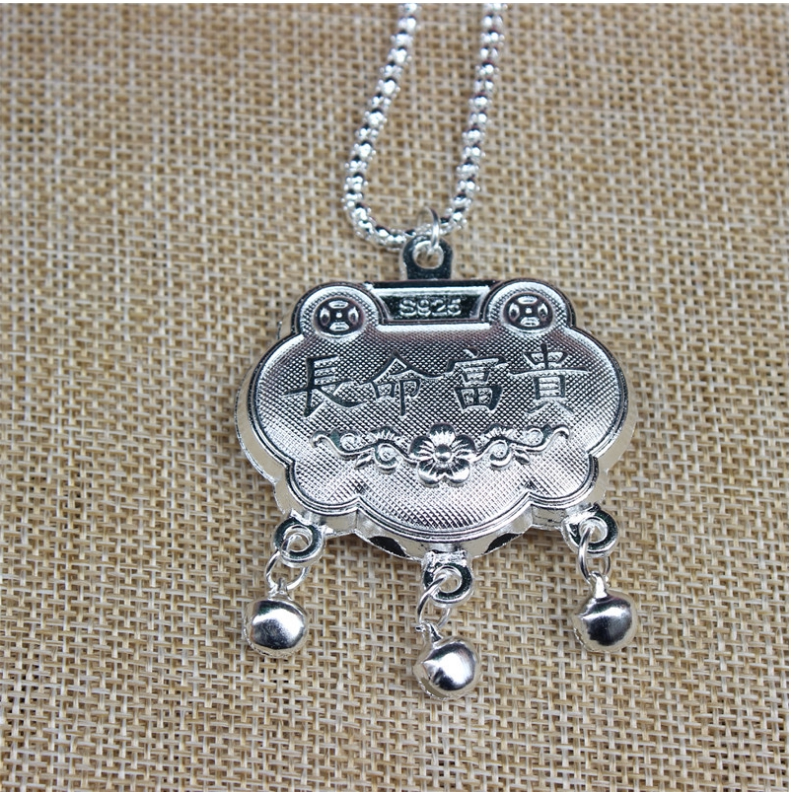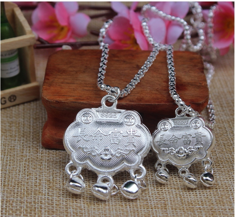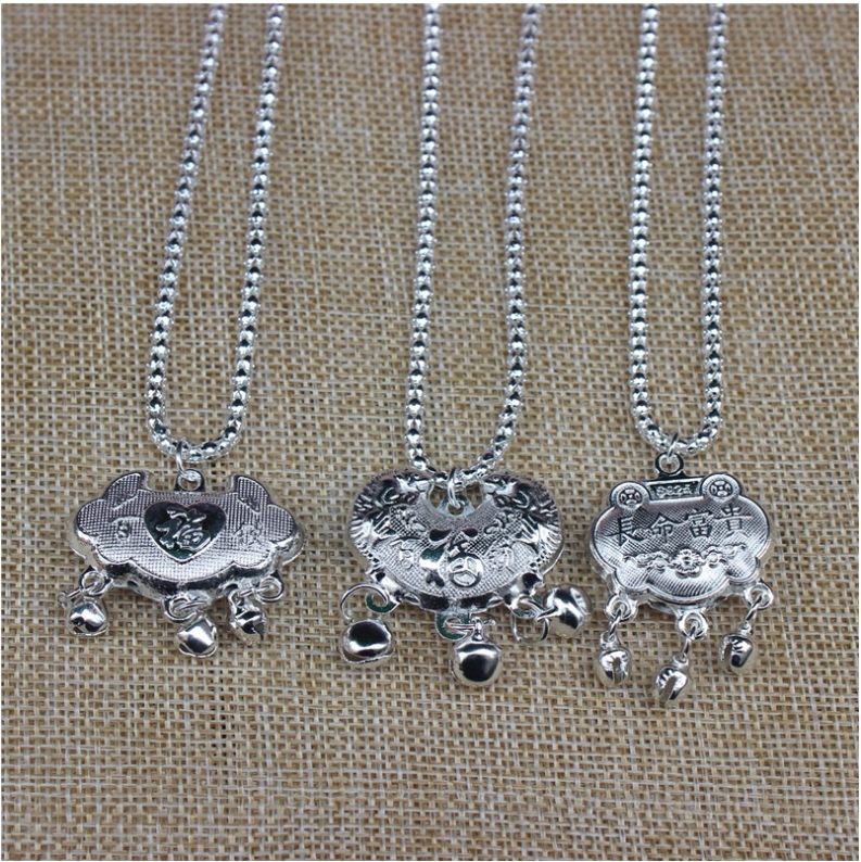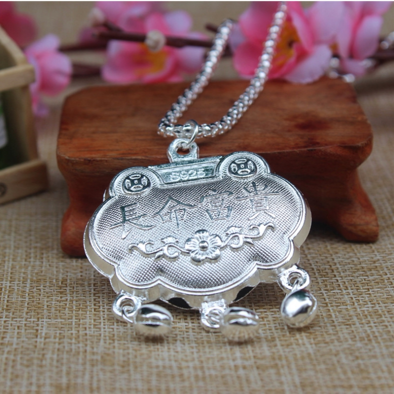 New national style imitation silver necklace vintage pendant Long life hundred-year-old necklace imitation silver necklace female