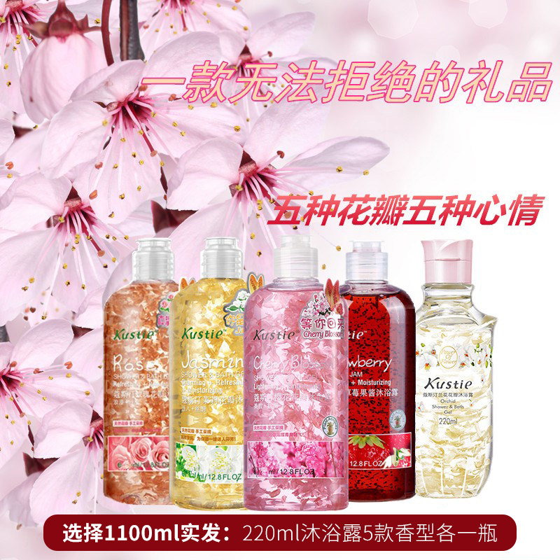 Custin 220ml×5 bottles of cherry blossom petal shower gel long-lasting fragrance body moisturizing moisturizing unisex gift