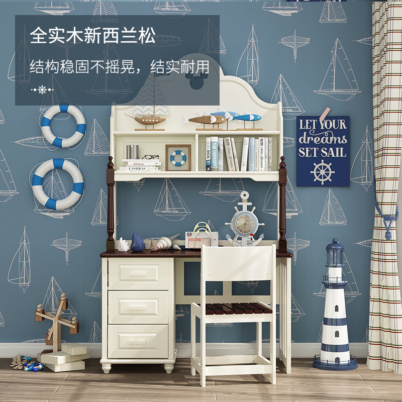 Coolmanju children's desk study table Mediterranean solid wood desk desk children's room furniture