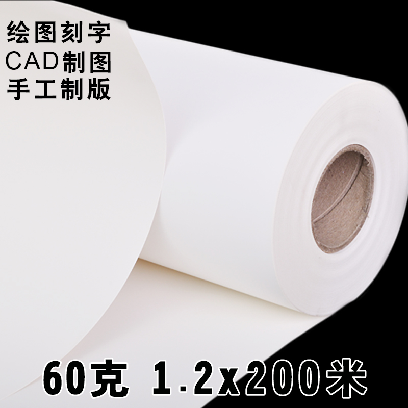 CAD computer plate paper 60g high whiteness White Paper Roll 1 2*200 meters widened drawing design copy paper News printing paper model paper cutting machine cutting paper white drawing