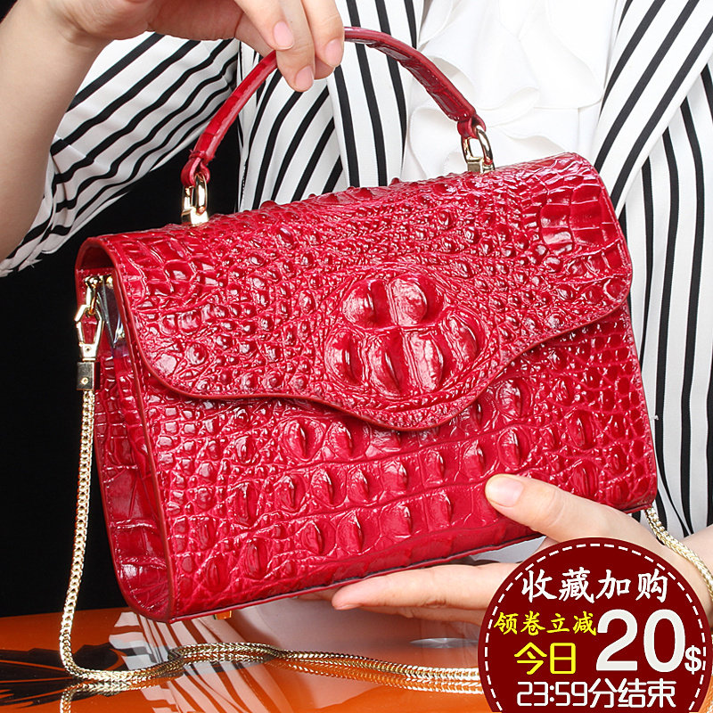 Crocodile leather shoulder bag women's genuine leather handbag fashion magnetic buckle Messenger bag personality Internet celebrity casual handbag summer