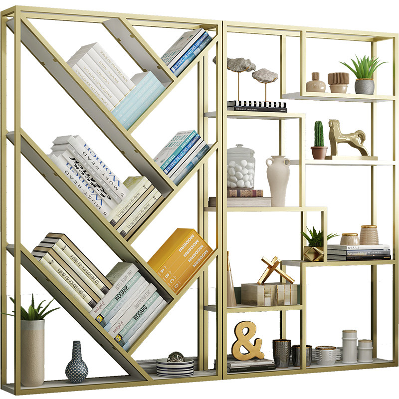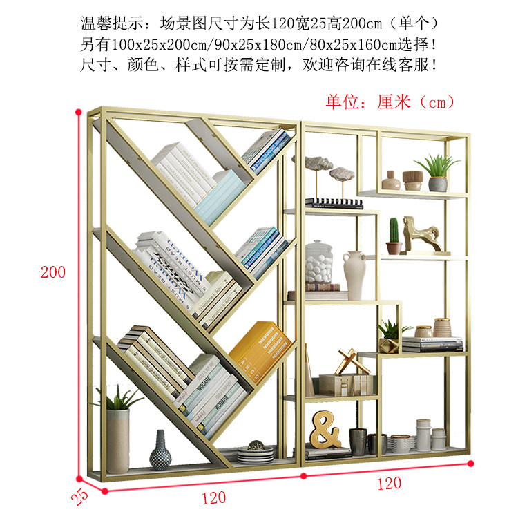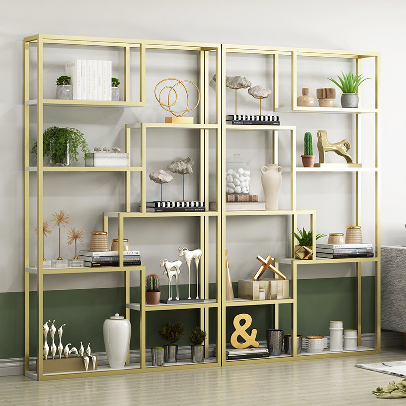 Nordic wrought iron solid wood shelf creative floor-standing bookshelf office bookcase combination golden living room display rack