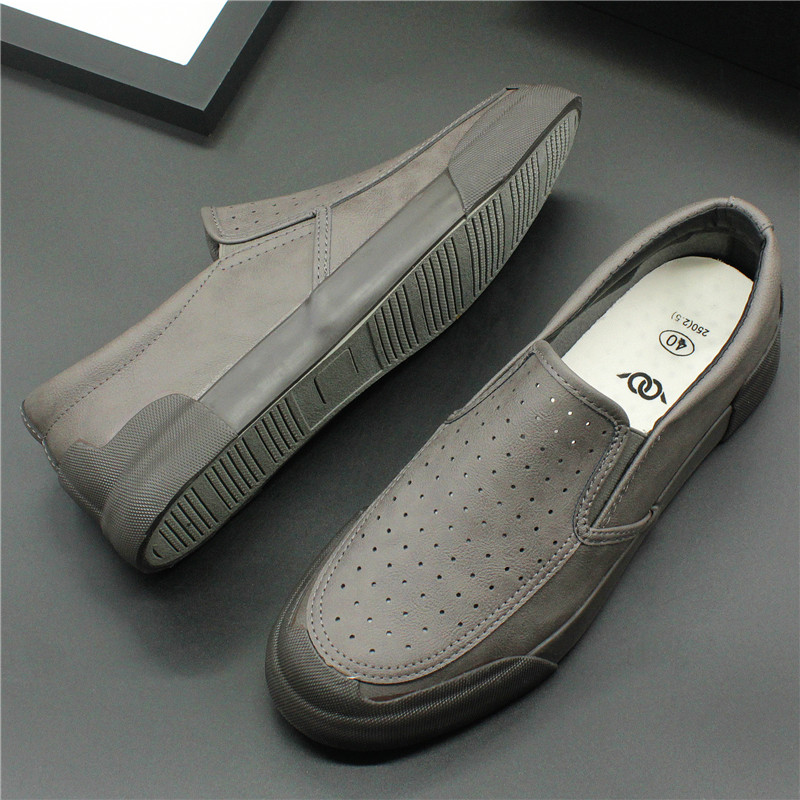 2020 summer new slip-on casual leather shoes hollow breathable sandals low top men's shoe covers foot hole eye sandals