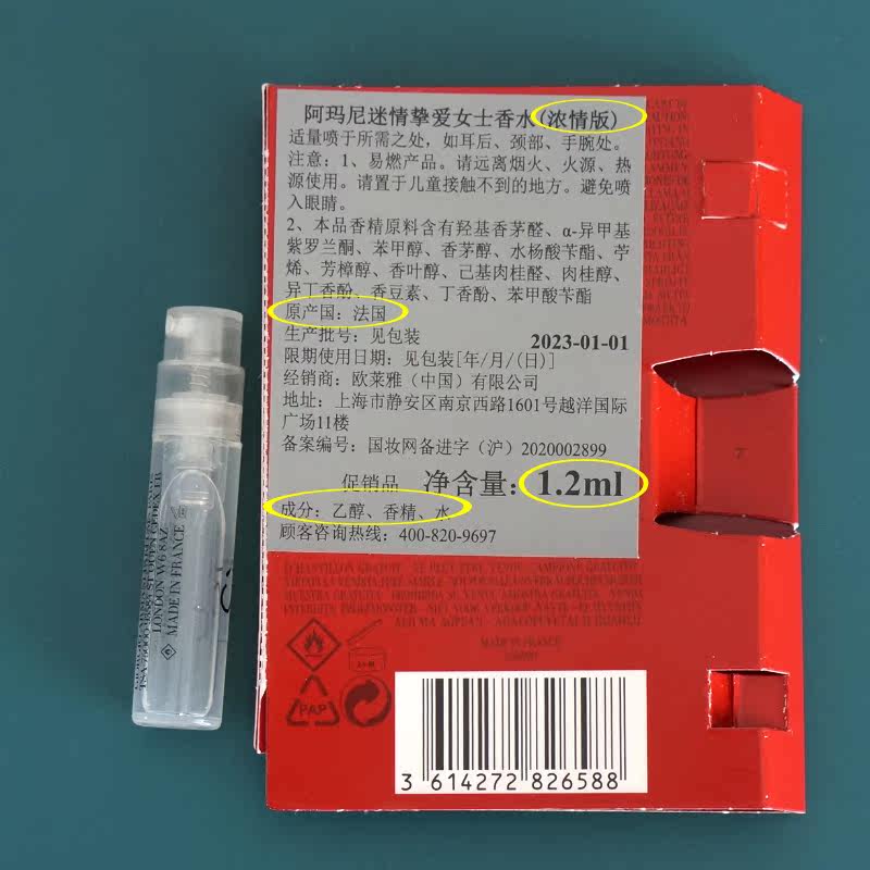 Passionate Edition (1 2ml test tube trial pack) Amani si fascinated love ladies perfume trial pack