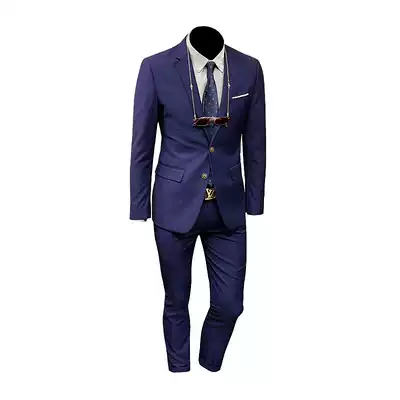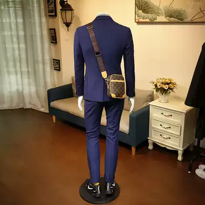 136524 spring new business casual formal Korean version slim fit wedding handsome groom dark blue suit men's suit