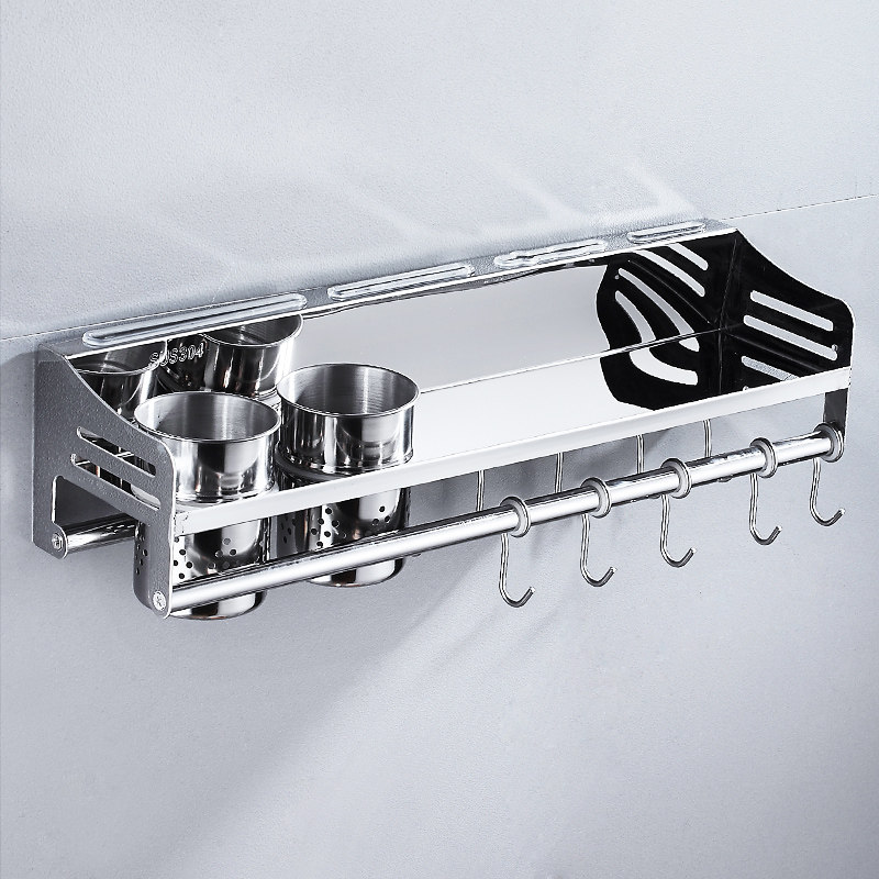 Non-perforated kitchen shelf 304 stainless steel kitchen rack seasoning rack Wall hardware knife rack supplies